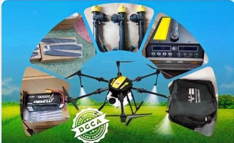 The drone saves time for farmers due to its high performance and large quantity of tank can spread pesticides over the field within less hours of time